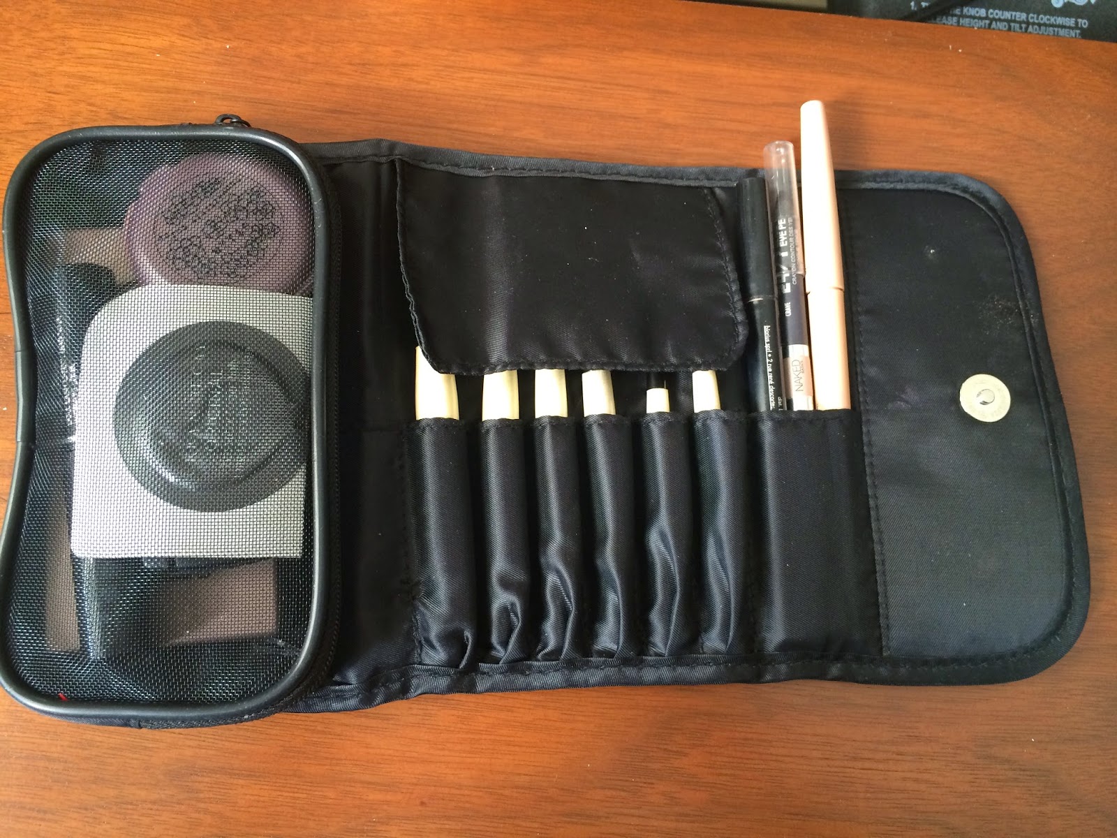 All packed up! This little brush set was a life saver. I showed one of the ladies I had lunch with and she insisted I send her the photo. Who knew that Walmart would be so handy? I was really happy to find that while the brushes aren't MAC quality, they do pack a good punch. They are fluffy but stiff enough to pick up product. The brushes have yet to shed excessively, and are pretty sturdy. All in all, not bad for $10. These will make travel much easier!