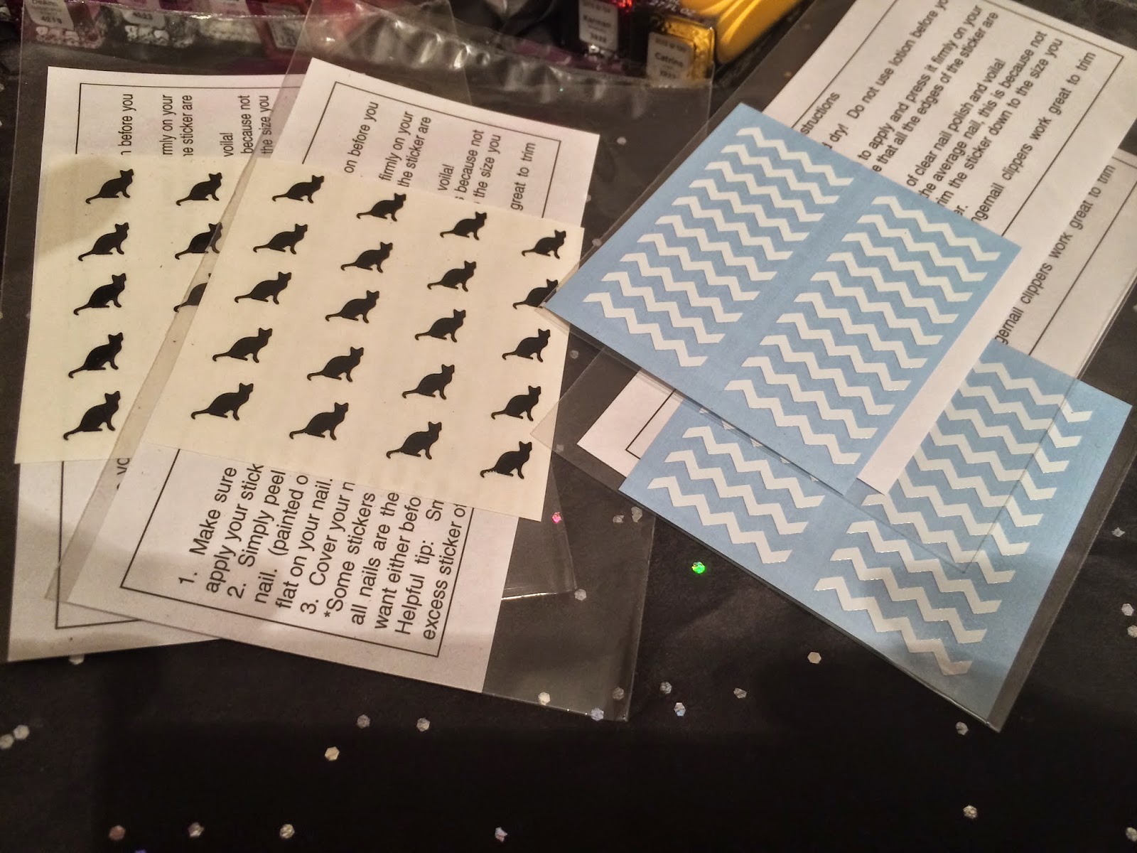 My boyfriend thought I was crazy for ordering two sheets of cat stickers. But how cute will these look on Dana for Halloween? I mainly wanted them because they were cats...tehehe. The chevron stripes are good too. I'll eventually use them :)